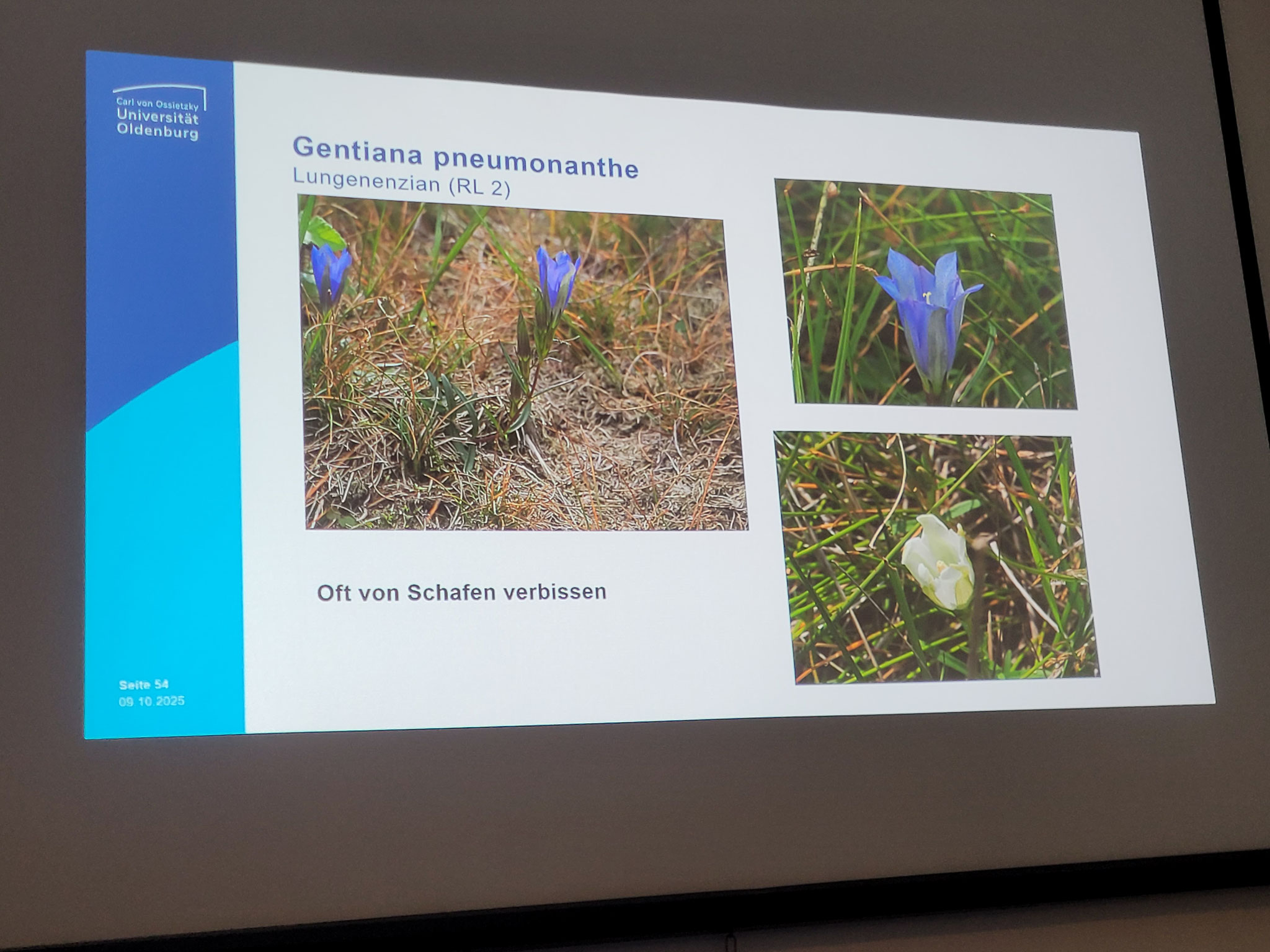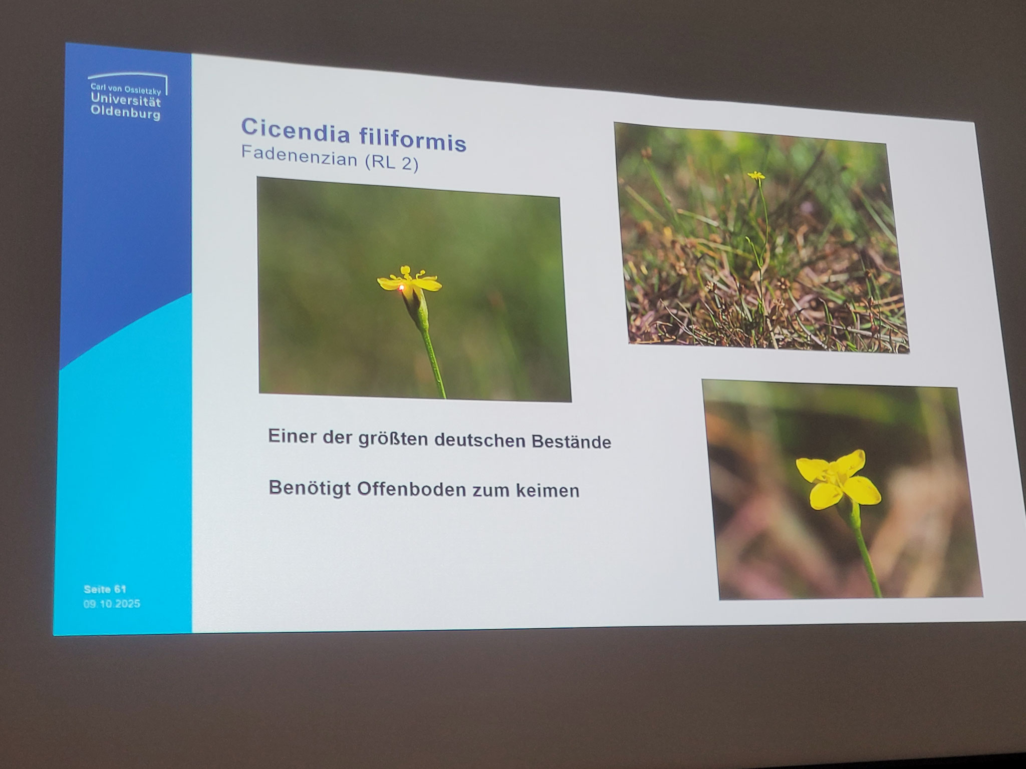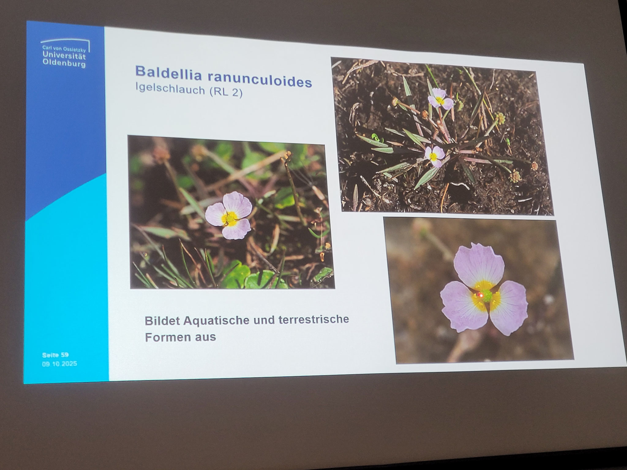 In der Vortragsreihe "Natur am Donnerstag" berichtete Ben Flint am 09.10.2025 über seine Untersuchungen im NSG Versener Heidesee im Rahmen seiner Masterarbeit. Der Vortragsraum in der NABU-Geschäftsstelle war bis auf den letzten Platz besetzt. Ben Flint trug sehr interessante Beobachtungen zur Flora des Naturschutzgebietes vor. Dabei wurde klar, dass es sich hier um eines der wertvollsten Schutzgebiete des Landes handelt. Eine beeindruckende Anzahl gefährdeter und zum Teil vom Aussterben bedrohter Arten findet sich in großer Individuendichte im und am Versener Heidesee. Ben Flint beeindruckte mit seiner Fachkompetenz und seinem Fleiß. Es gelang ihm die Zuhörer/innen in die Zusammenhänge der Flora im Zusammenspiel mit verschiedenen Einflüssen, wie z.B. Stickstoffeintrag, Biotoppflege oder schwankenden Wasserständen einzuführen.