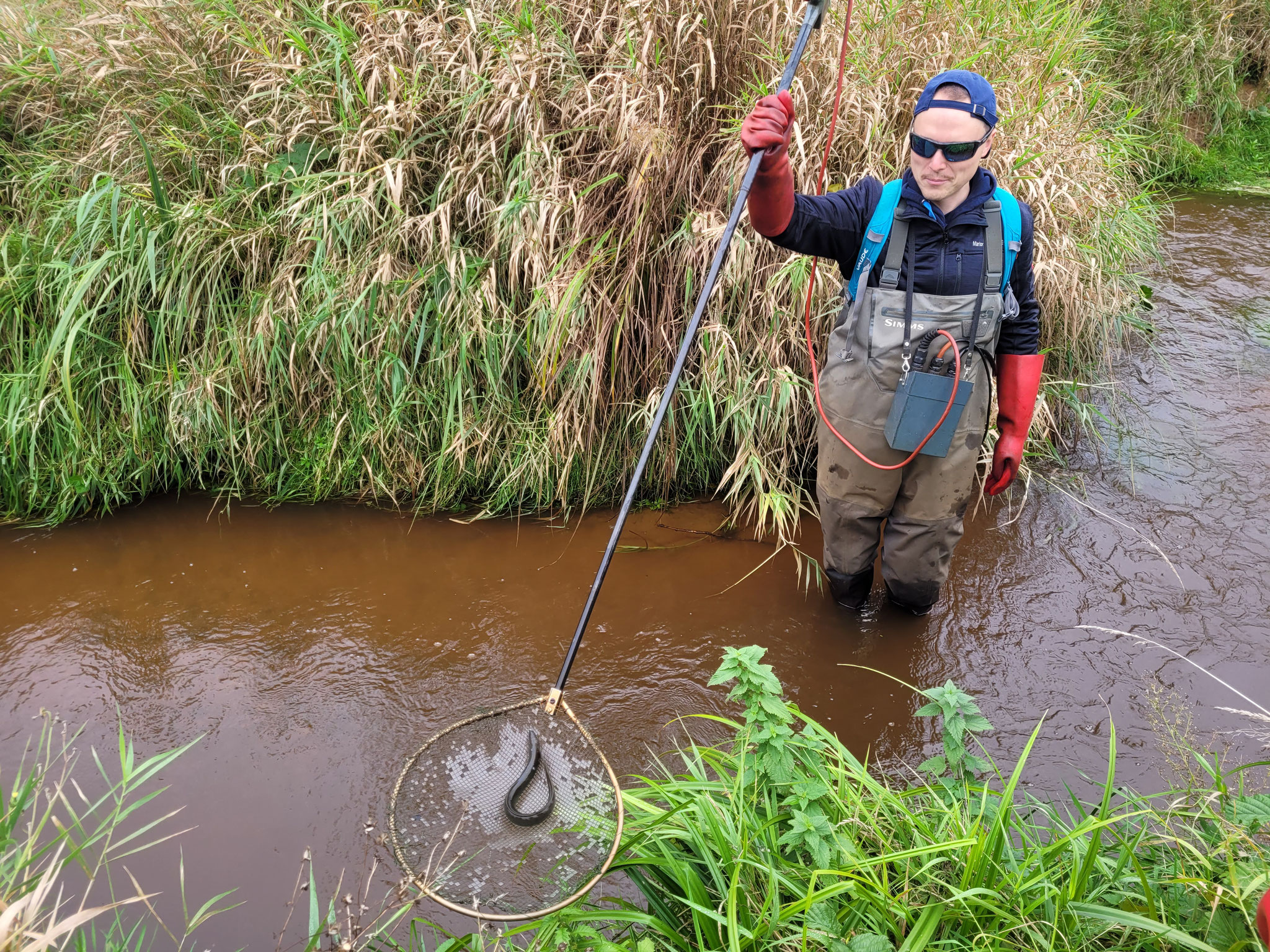 Die Fischereibiologische Station Ems Hase (FEH) untersuchte nun das Gewässer im Rahmen einer gut besuchten Exkursion mit dem NABU mittels einer Elektrobefischung.
