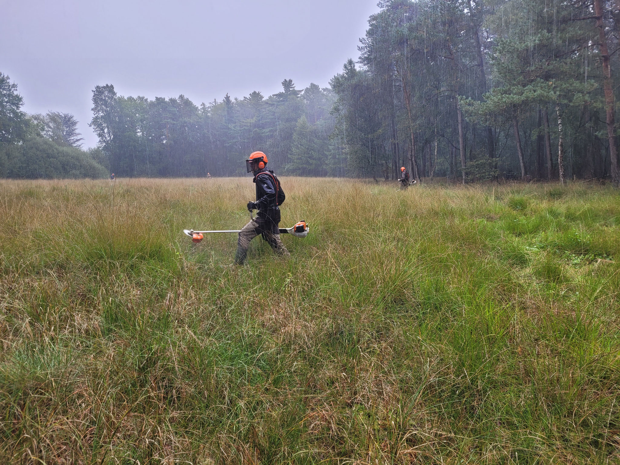 Im vergangenen Winter hatte die Projektgruppe Naturschutz im Randbereich des Moores Gehölze entfernt, um den Wasserentzug aus dem Moor zu verringern. Auch diese Randbereiche wurden in die regelmäßigen Pflegearbeiten einbezogen.
