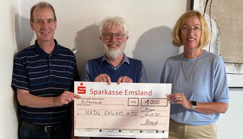 Die Firma Möbel Brand spendet im Rahmen dieser Zusammenarbeit dem NABU Emsland Mitte e.V. einen Betrag in Höhe von Euro 1000,00. Bei der Scheckübergabe waren zugegen von links: Markus Paetzold (Schriftführer des NABU Emsland Mitte e.V.), Ulrich Wilde (1. Vorsitzender NABU Emsland Mitte e. V.), Rita Brandt vom Möbelhaus Brand. Alle Beteiligten haben nochmals hervorgehoben, dass das Thema Nachhaltigkeit einen großen Stellenwert in unserer Gesellschaft einnimmt und bedankten sich für die erfolgreiche und gute Zusammenarbeit in der Vorbereitung und Durchführung der Nachhaltigkeitswoche. Der NABU Emsland Mitte e.V. bedankt sich für die großzügige Spende. Mit dem Betrag lassen sich viele notwendige Naturschutzprojekte finanzieren.