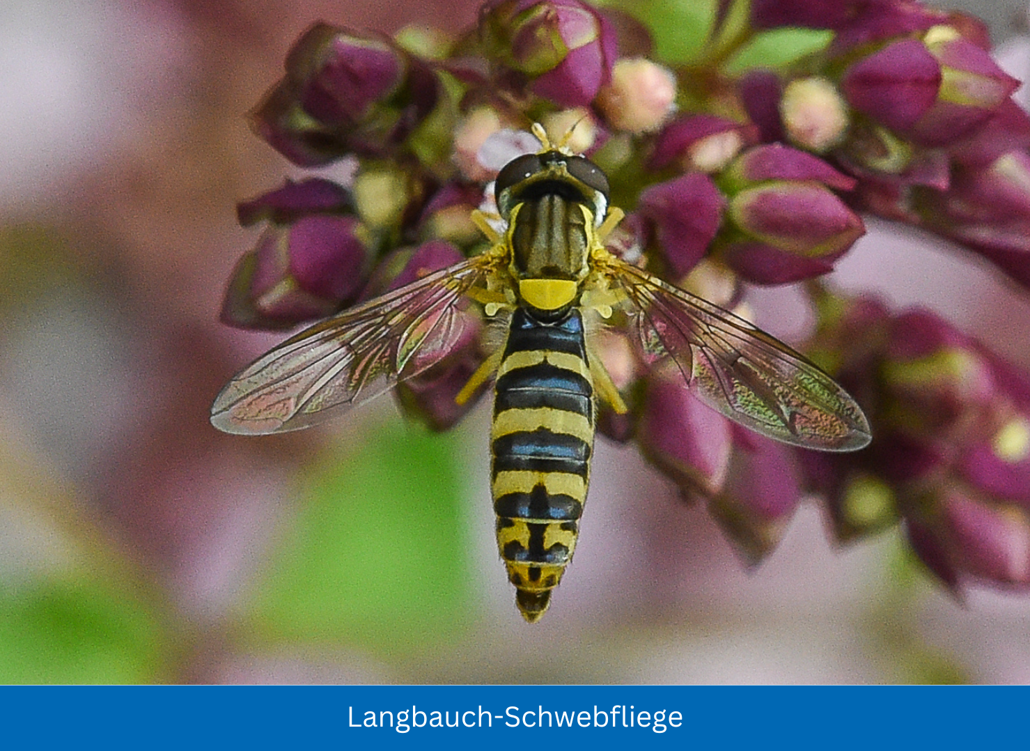 Michael Trautnitz hat sich im Meppener Naturschaugarten auf Fotopirsch nach Insekten & Co begeben. Neben zahlreichen Hummel-, Schmetterlings- und Libellenarten hat er dabei interessante Schwebfliegen, Käfer, aber auch Spinnen entdeckt, von denen hier eine kleine Auswahl in gelungenen Bildern vorgestellt wird.